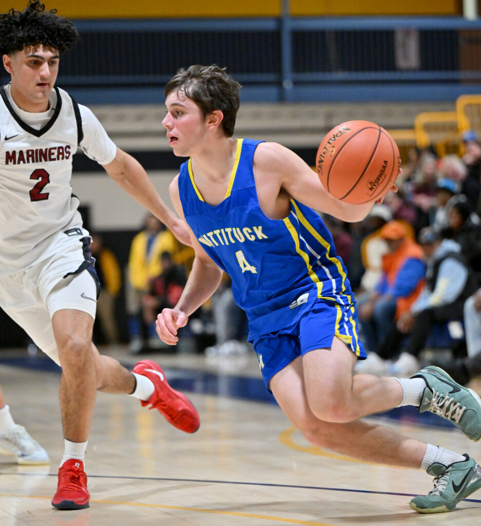Michael Finnegan scored 17 points and grabbed 11 rebounds, sparking the Tuckers to a 54-49 victory over Bridgehampton in the opening round of the Kendall Madison Invitational on Friday, Dec. 9. Mattituck didn’t breathe easy until Connor Fox (13 points) sank two foul shots with 20 seconds left in the game to give the team a two-possession lead. Brady Dwyer added 10 points in the tight encounter. Alex Davis led Bridgehampton (0-2) with 19 points.