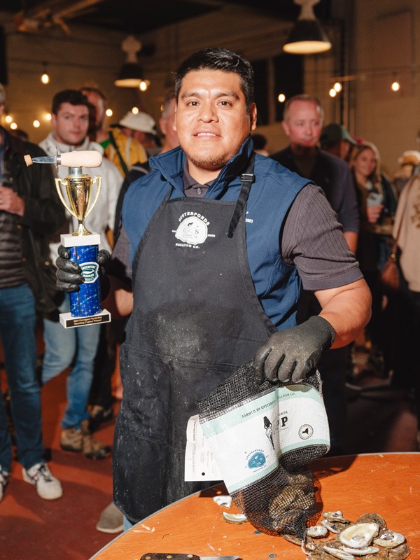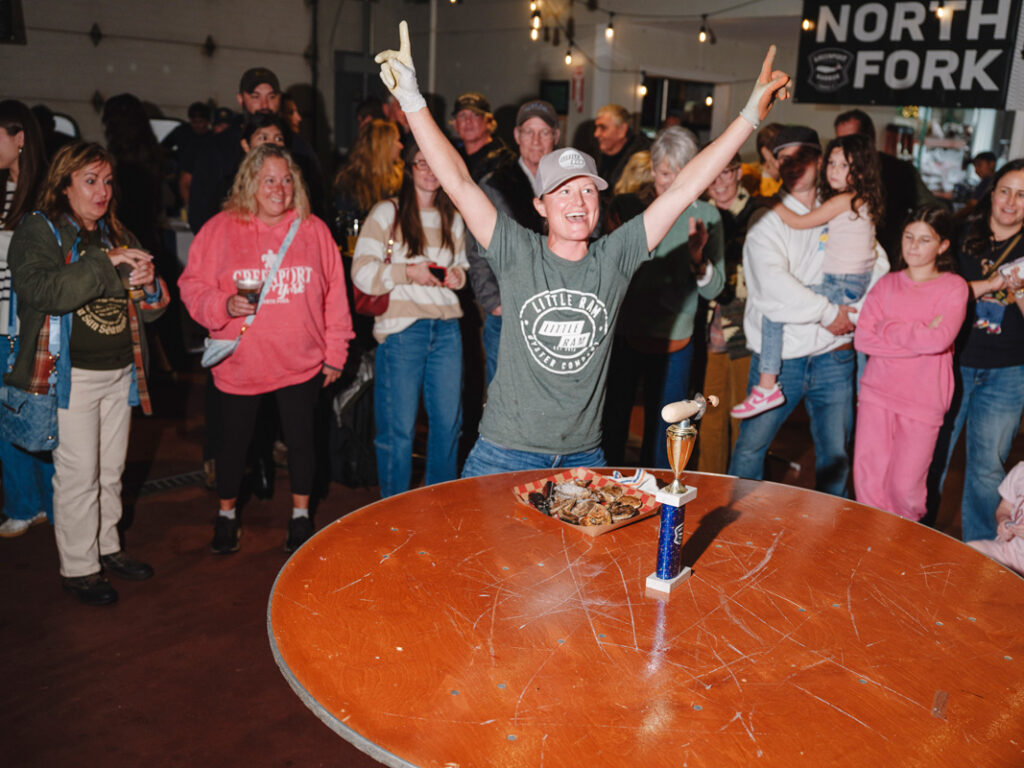 Reigning champion, Israel “Izzy” Montes shucked a dozen oysters the fastest, keeping Oysterponds Shellfish Co. on top with Little Ram Oysters and Peconic Gold Oysters taking second and third in the annual Oyster Shucking Competition.