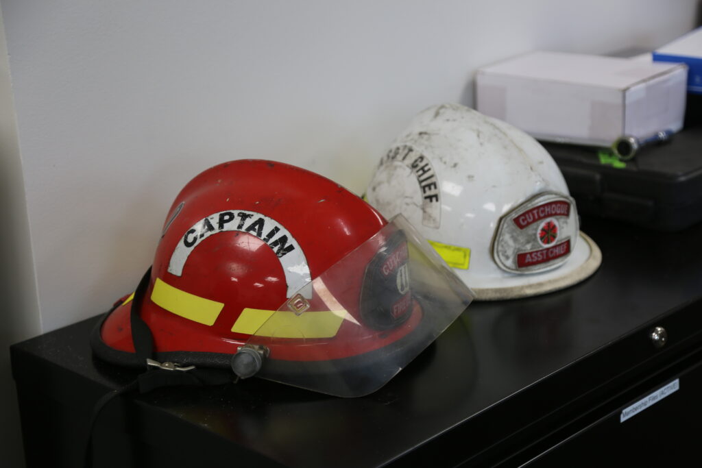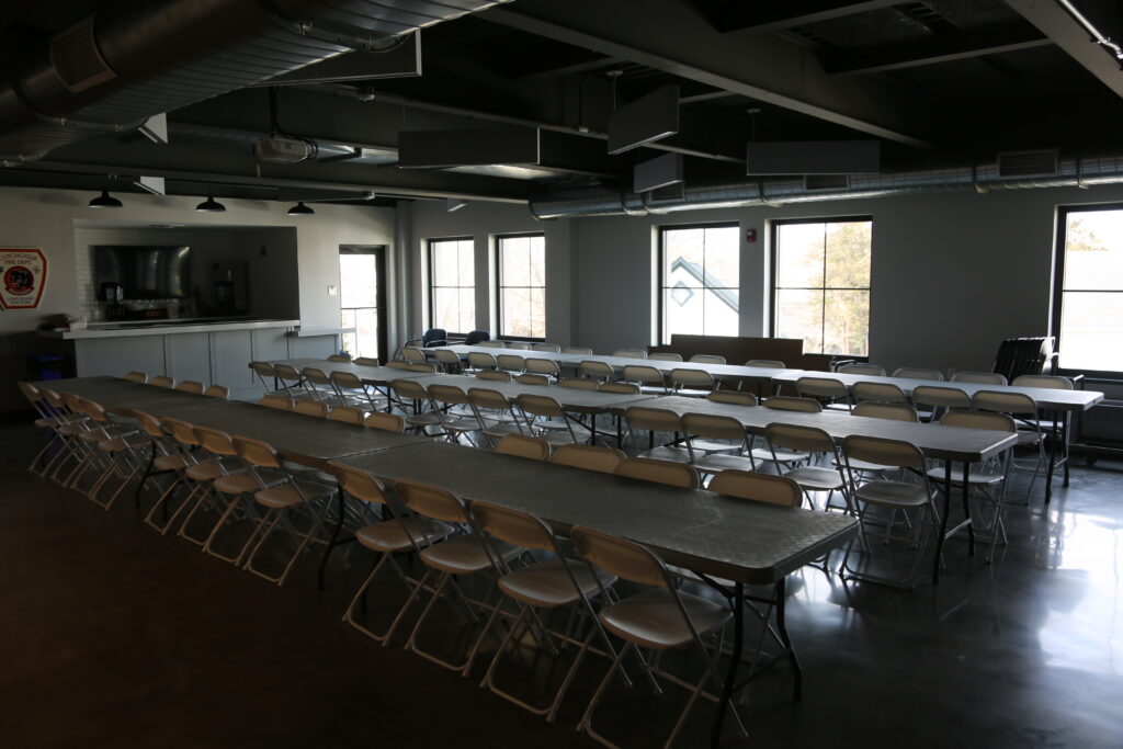 Chief Boken now has a spacious office — a notable change from the previous building — with a decorative fire ax mounted on the door. The building also includes a large meeting room for district business and community use, along with a dining hall and commercial kitchen capable of serving the department’s 162 members.