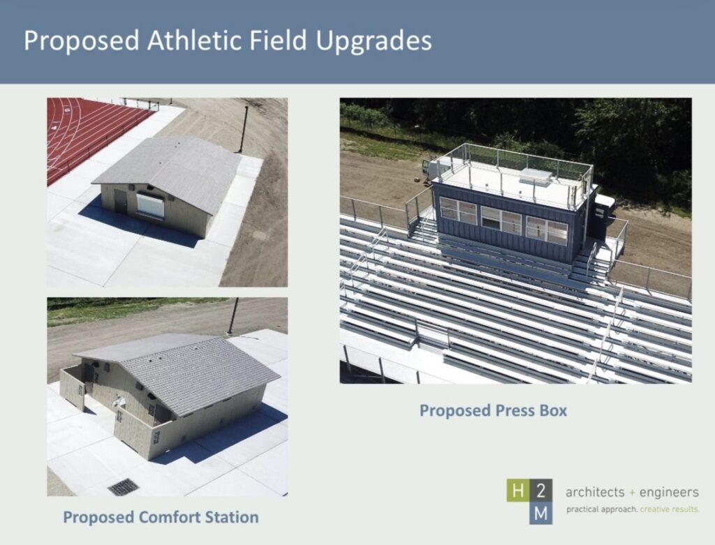 The proposal would reconstruct and resurface the school’s cinder track and add new bleachers with accessible seating, along with a press box, comfort station and concession area. Improvements would also be made to locker room ceilings.