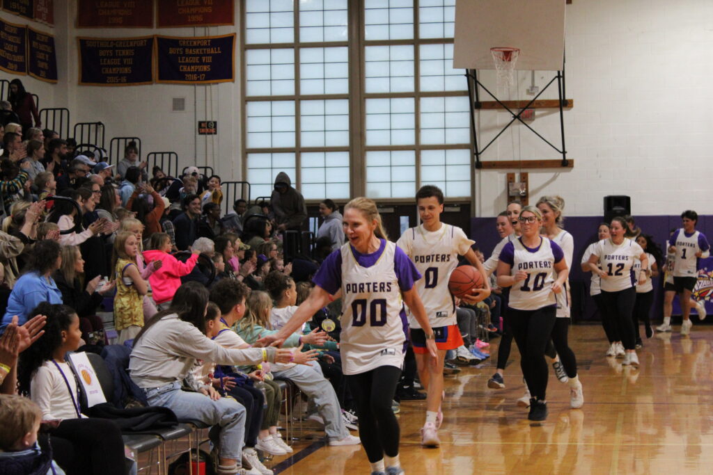 “Today is great because it is a representation of how the community supports Greenport schools,” Superintendent Beth Doyle said just before tip-off. “Everyone is out here; it’s parents, it’s kids, it’s alumni, former basketball players, current basketball players, just here to support our schools. I am going to try not to embarrass myself.”