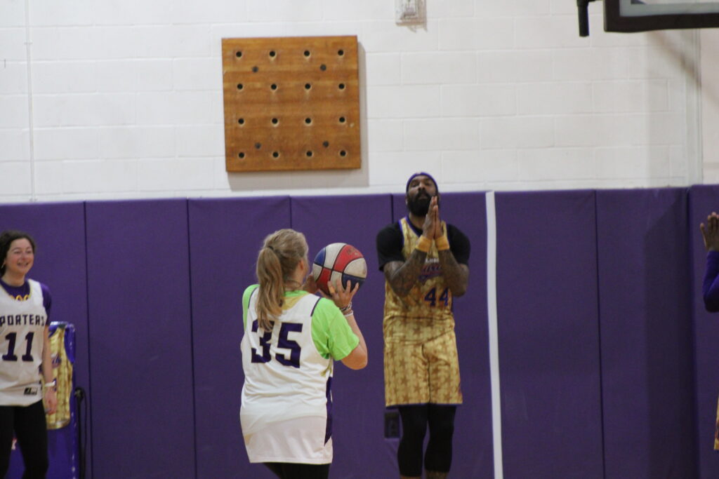 Staff got a break to start the second half, with members of Greenport’s varsity boys basketball team taking the court. Not just that, but they were given a 10-point lead, too. The intensity got kicked up a notch, with some of the high schoolers even getting dunked on.